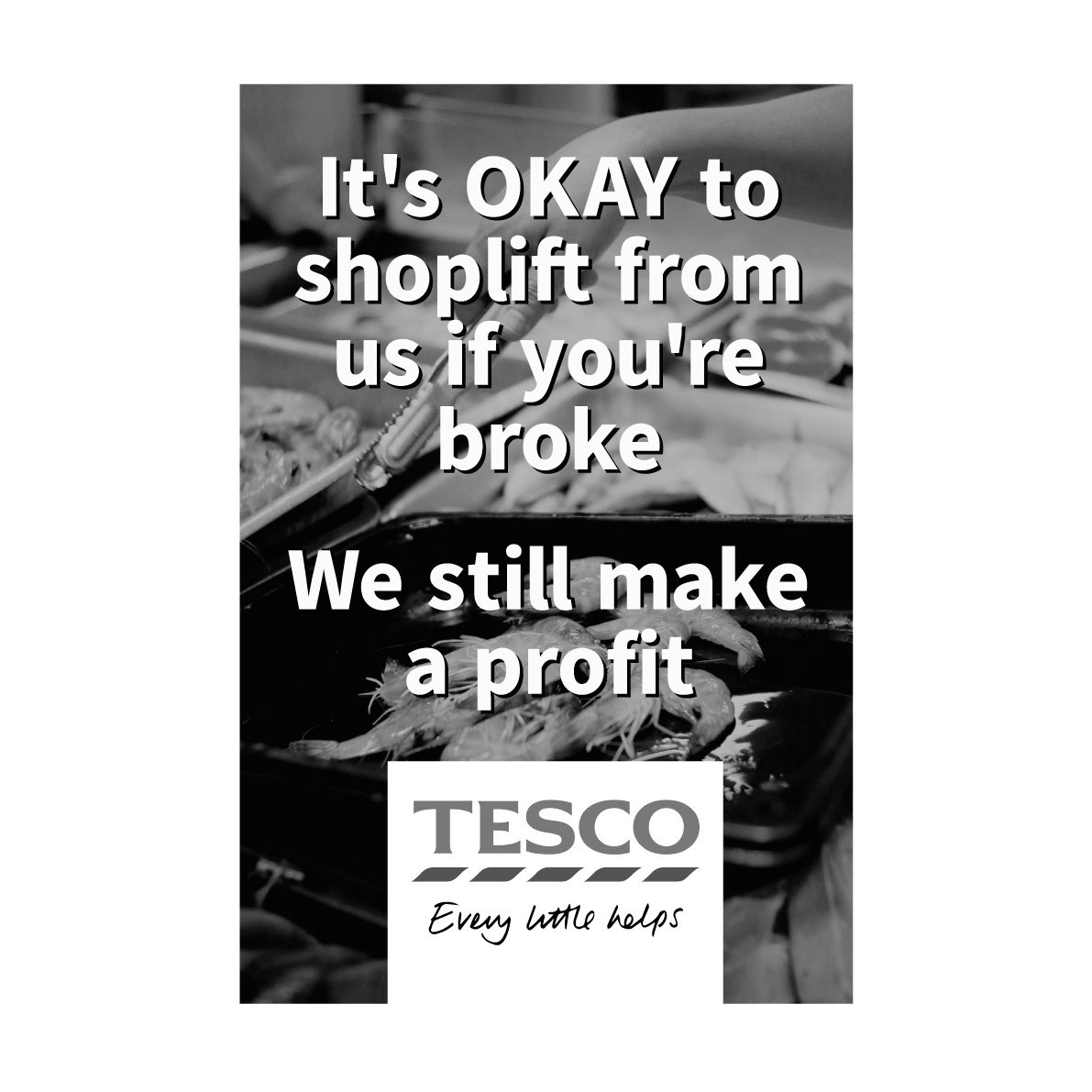 So Foka Wolf makes their own. The anonymous artist’s work began as a serious of handwritten stickers serving as classified ads for organisations like “ILLUMINATI DEATH CULT”, “ROAD MAN CHAT” and “VOODOO FOR BEGINNERS”, and when they discovered that you could get enough large format prints made to cover a billboard for £25, they moved into full on subvertising. Occupying ad space with huge works that force conversation and poke fun at a host of brands, political parties, and individuals, Foka Wolf makes their prints at home in the post-truth apocalypse.